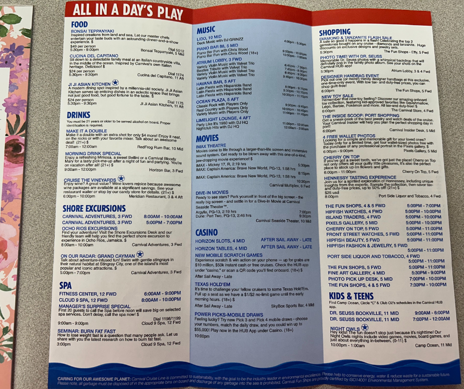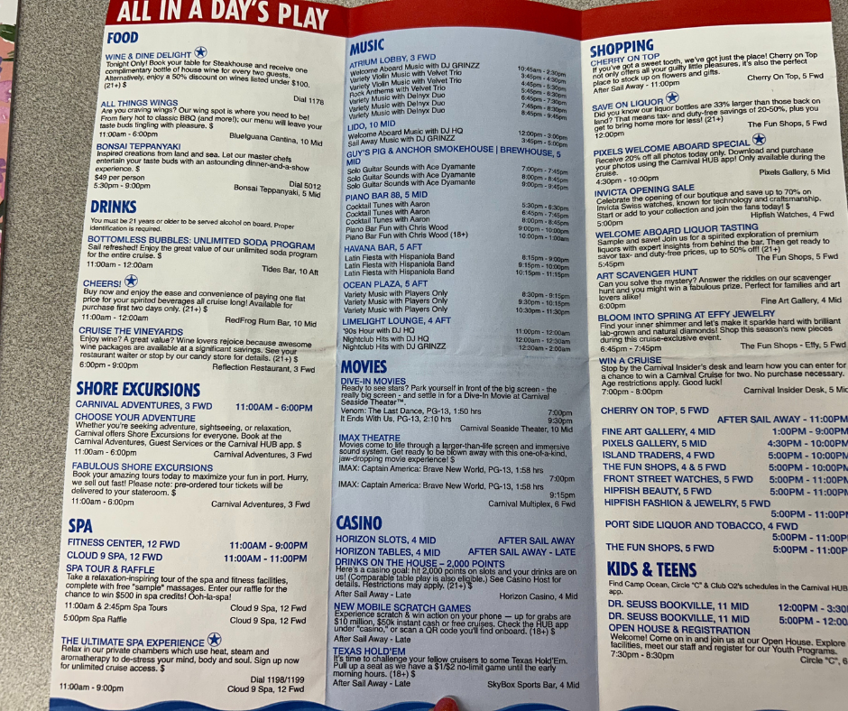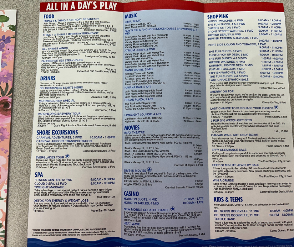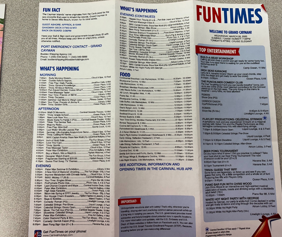 Here are the daily Fun Times for the Carnival Horizon Sailing, March 23-29, 2025.